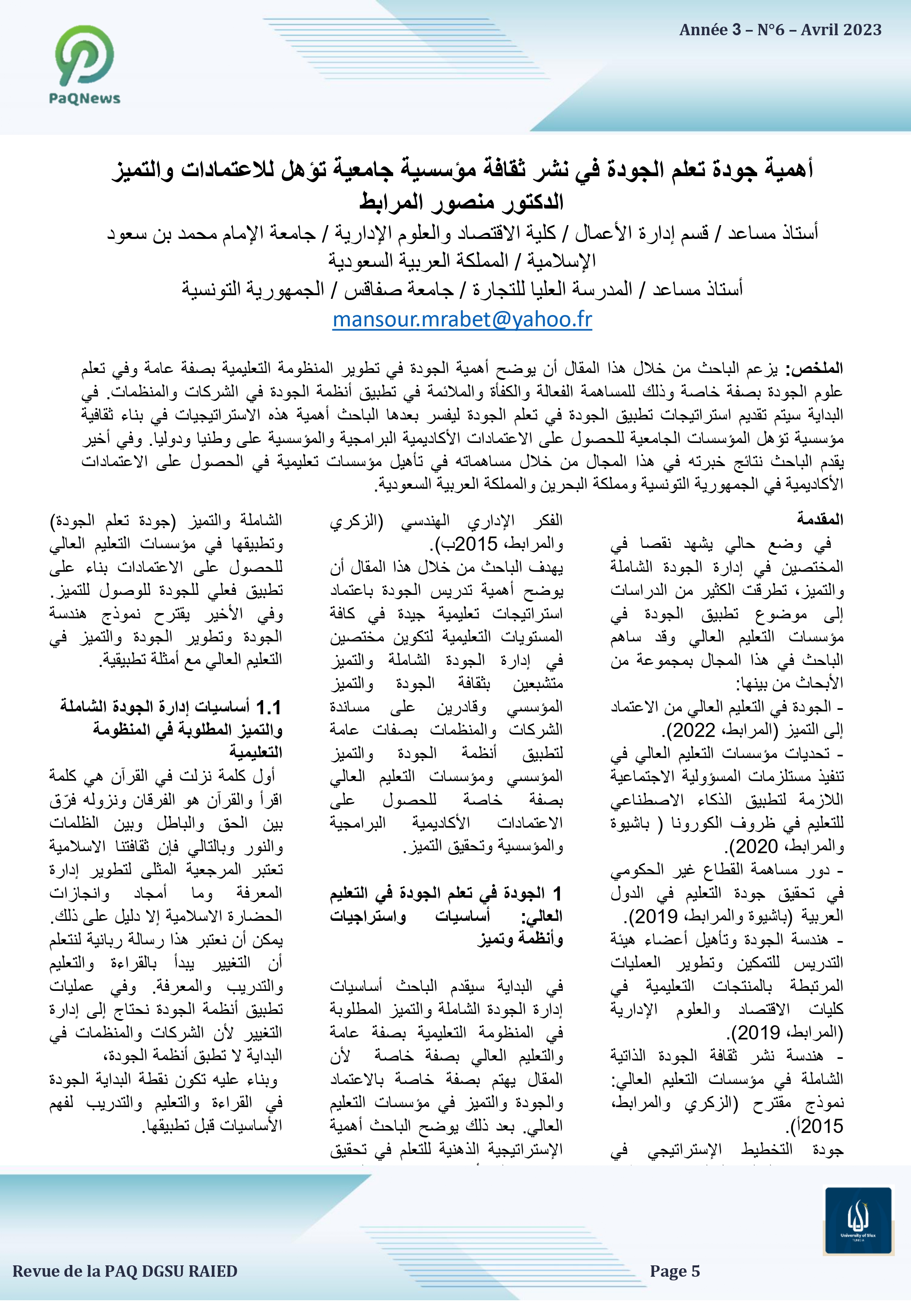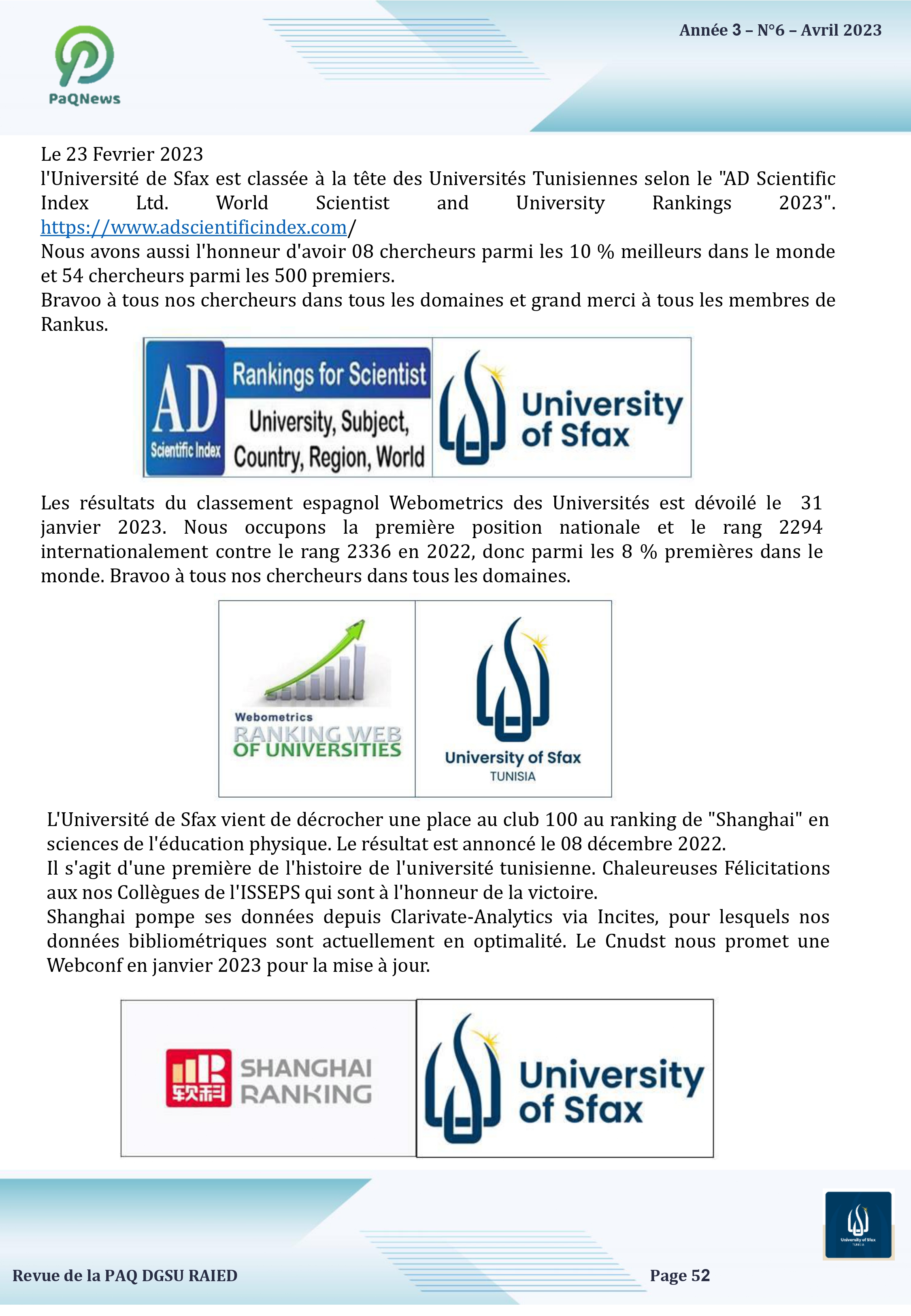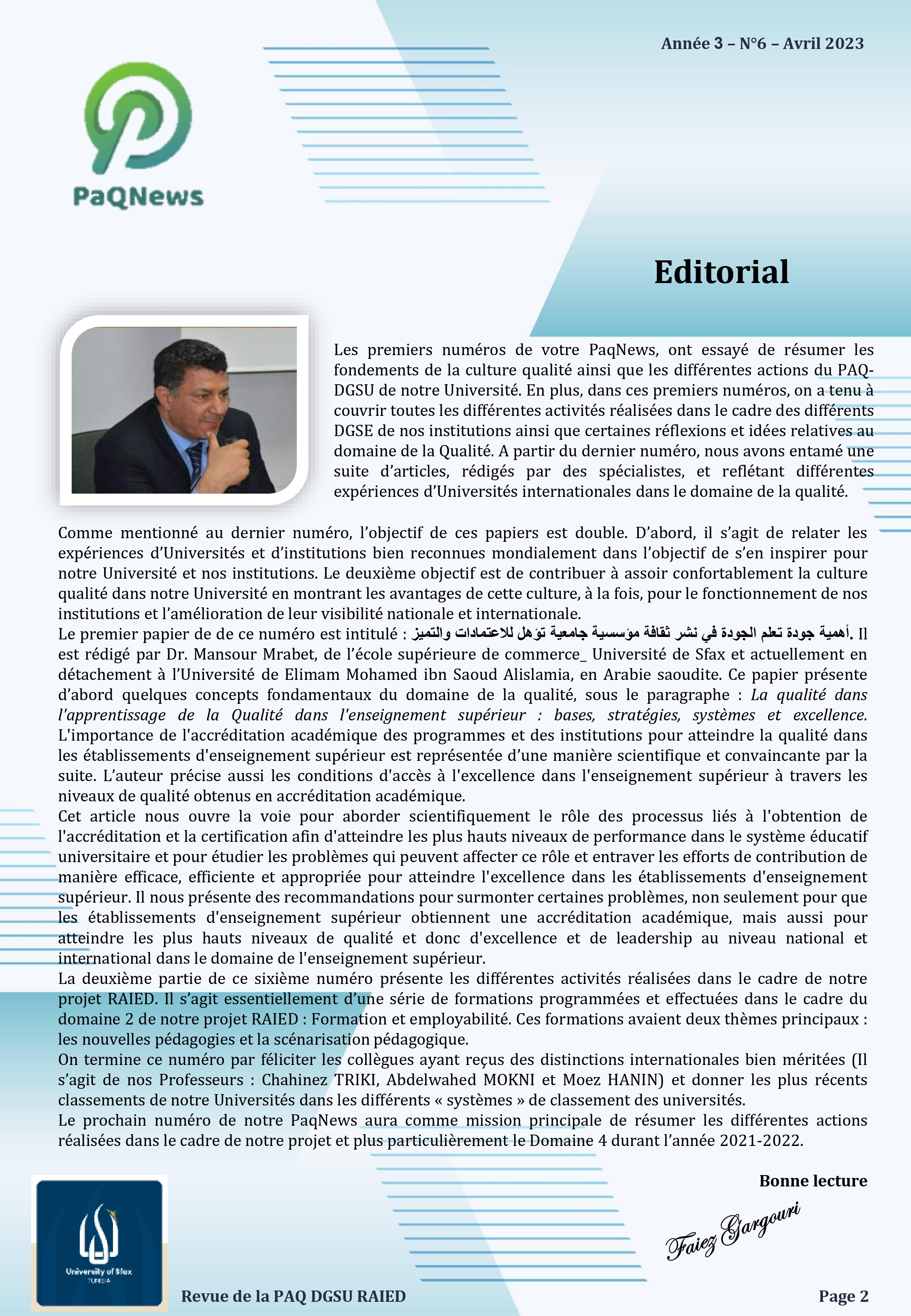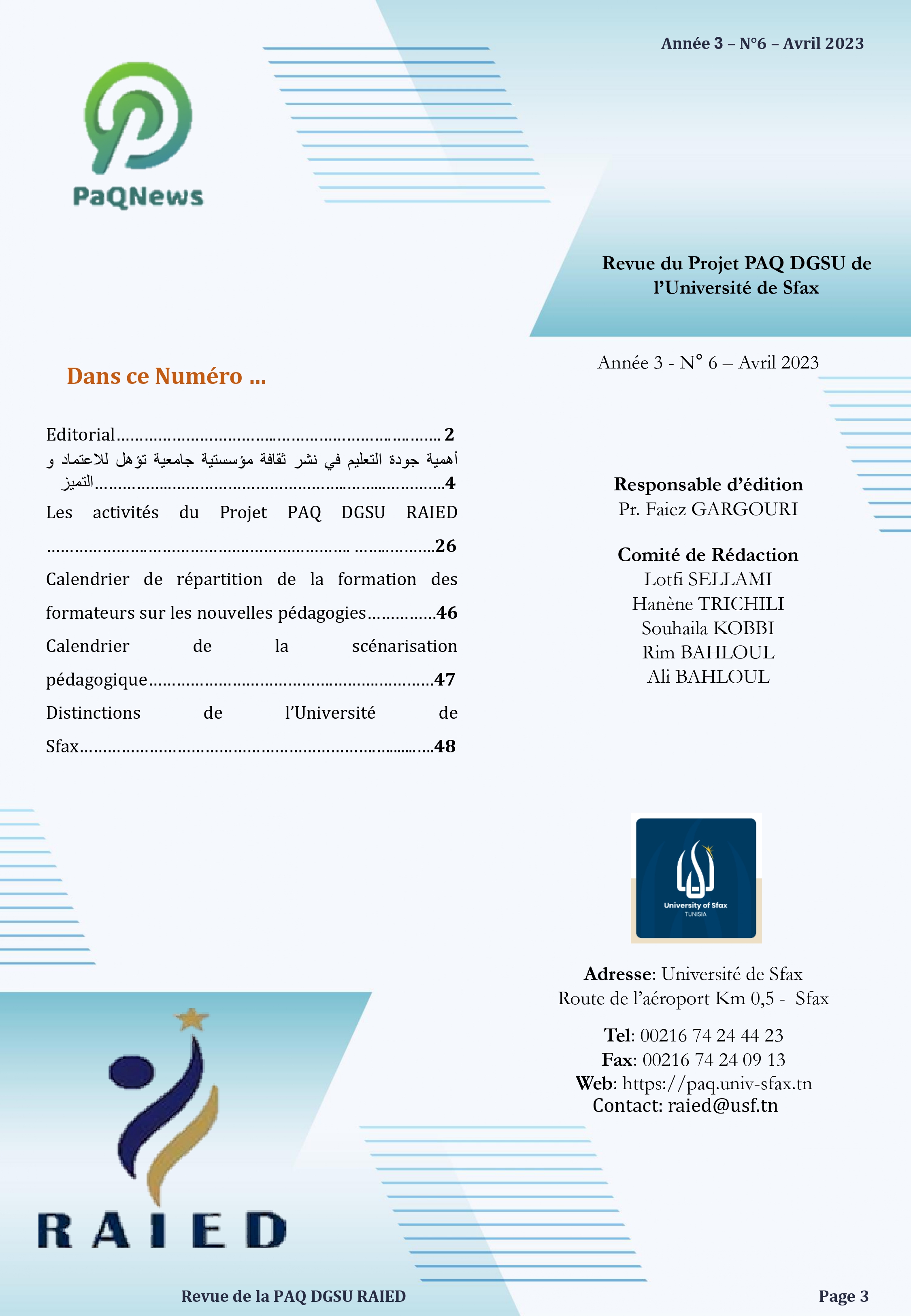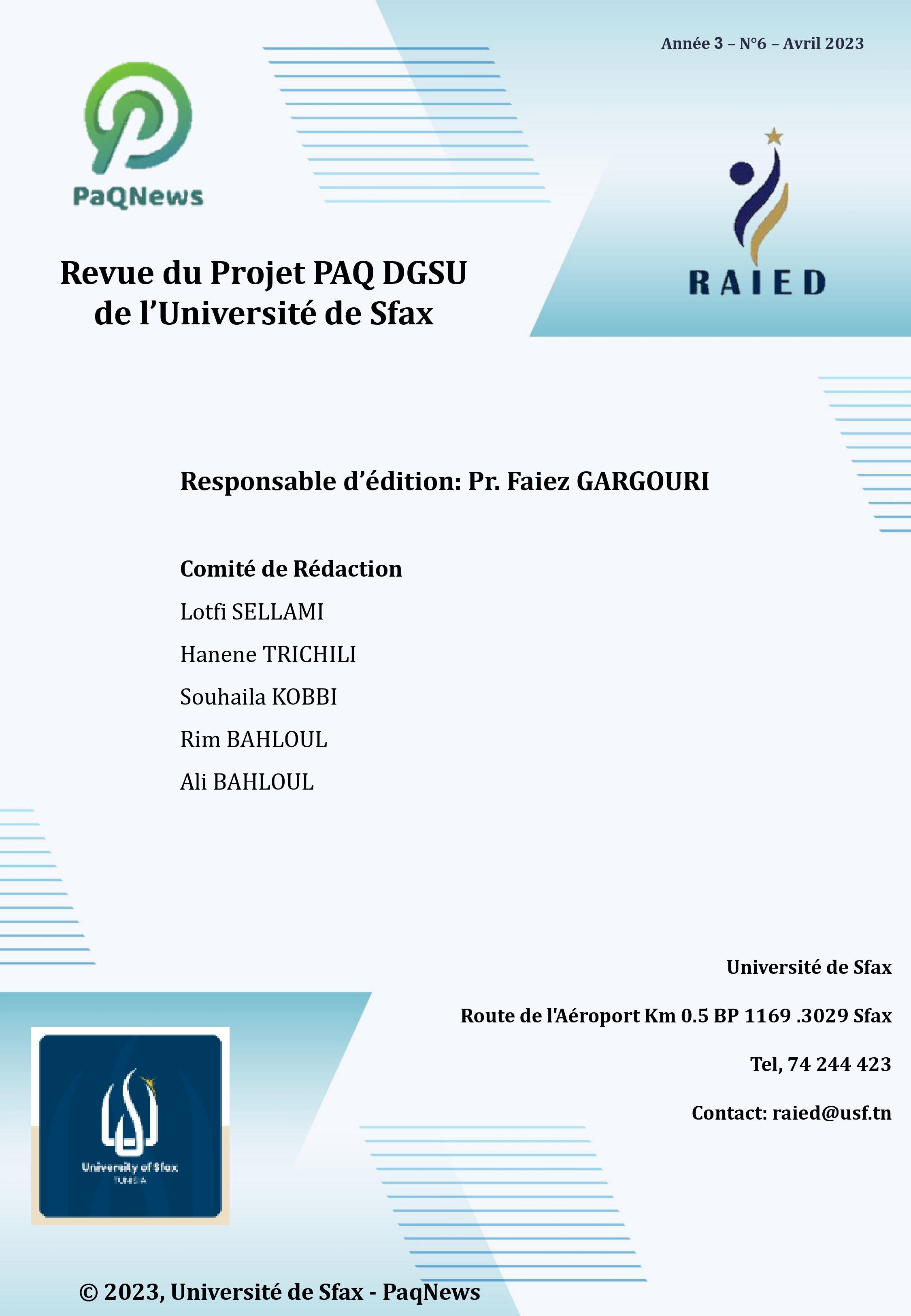Université de Sfax. Route de l'Aéroport Km 0.5 BP 1169 .3029 Sfax